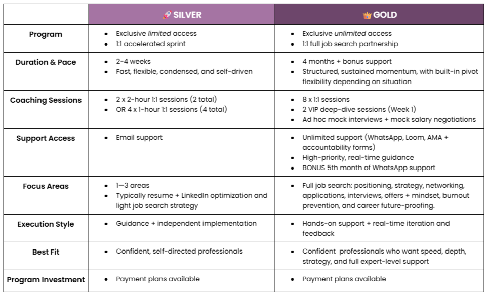 Explore both options—from a targeted month-long sprint to a deep-dive search partnership—and book your clarity call to get started.
